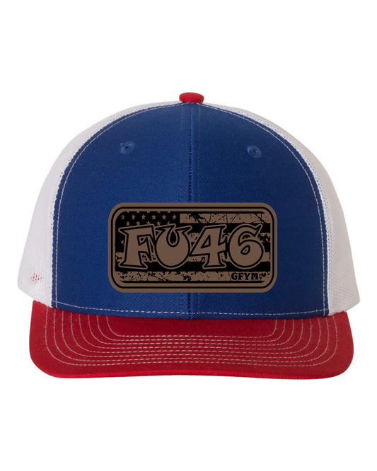 FJB RED/WHITE/BLUE Leather Patch Richardson 112 Trucker Hat and StickerRegular price £24.00 GBPRegular priceUnit price per